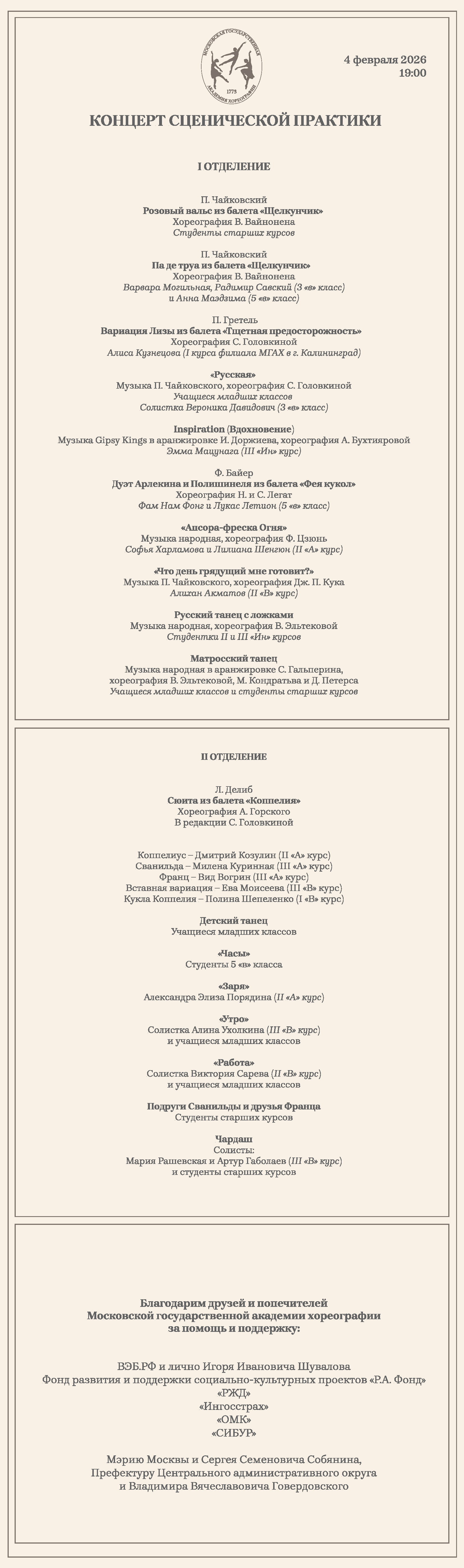 Предлагаем Вашему вниманию программу концерта 4 февраля.