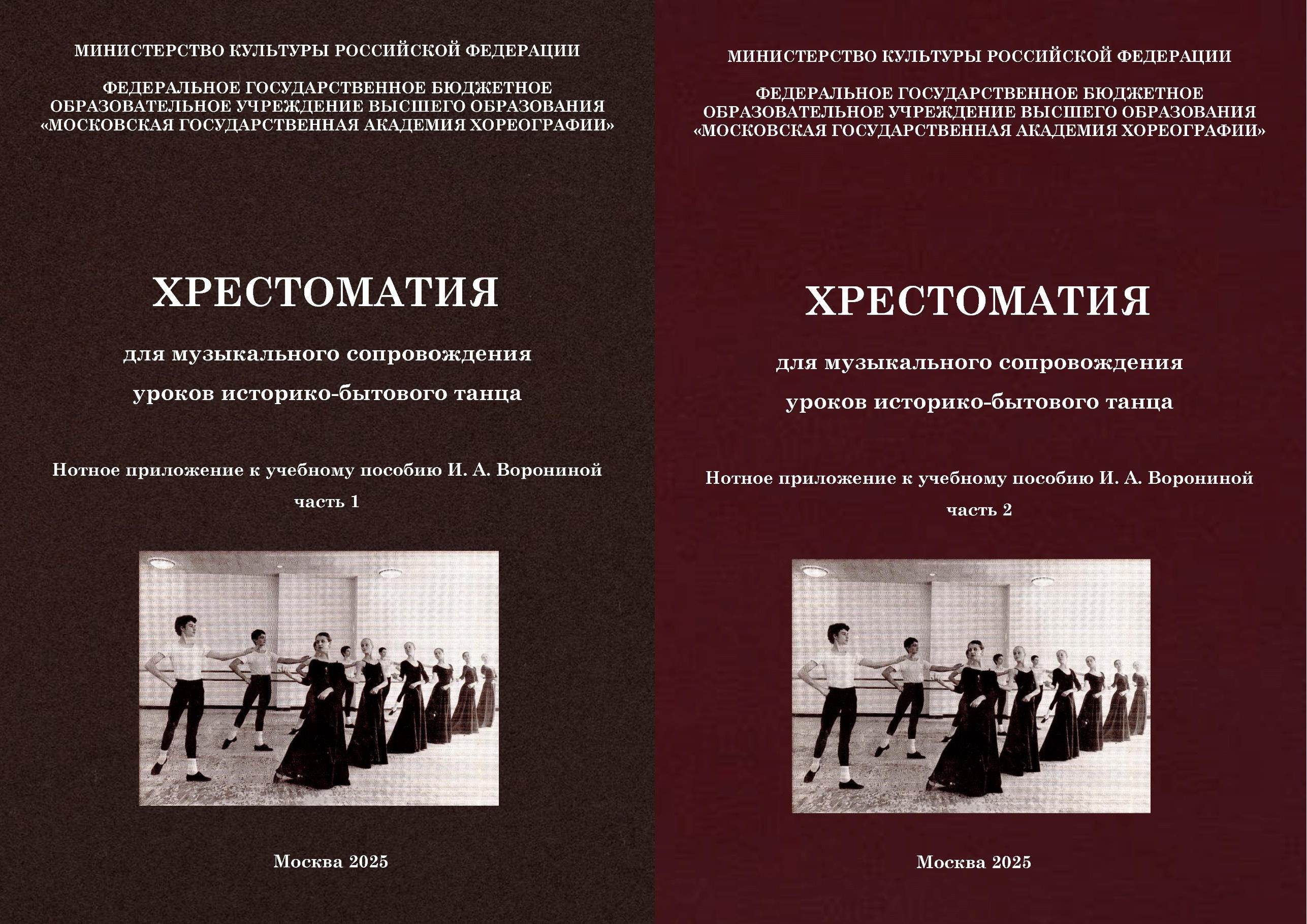 Это сборник научных статей — периодическое издание «ACADEMIA: Танец. Музыка. Театр. Образование № 2 (60)», учебное пособие преподавателя кафедры хореографии и балетоведения И. Е. Бачуриной «История мировой культуры. Европейское искусство от античности до постимпрессионизма» и Хрестоматия для музыкального сопровождения уроков историко-бытового танца (нотное приложение к учебному пособию И. А. Ворониной, в 2-х частях).